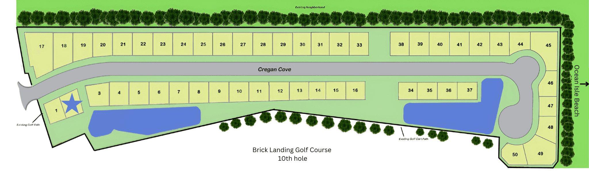 This lot backs up to the golf course, hole 10. We'll be landscaping your home with local hardy plants chosen with care dependent on soill and time of year.