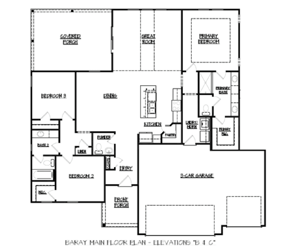 This refined 3-bedroom, 2-bath ranch-style residence showcases a well-planned open-concept design where the kitchen and dining areas flow effortlessly into a spacious great room with a vaulted ceiling, creating an inviting atmosphere ideal for both daily living and entertaining. The primary suite serves as a private retreat, featuring a well-appointed ensuite with a generous walk-in shower. Additional conveniences include a dedicated laundry room and a functional mudroom designed for everyday ease. Covered front and rear porches extend the living space outdoors, offering comfortable areas to relax and gather. Thoughtfully crafted throughout, this home reflects a seamless balance of comfort, style, and quality construction.